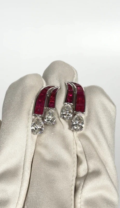 СЕРЬГИ С БРИЛЛИАНТАМИ И РУБИНАМИ