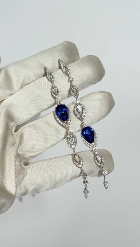 СЕРЬГИ С ТАНЗАНИТАМИ И БРИЛЛИАНТАМИ