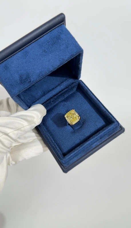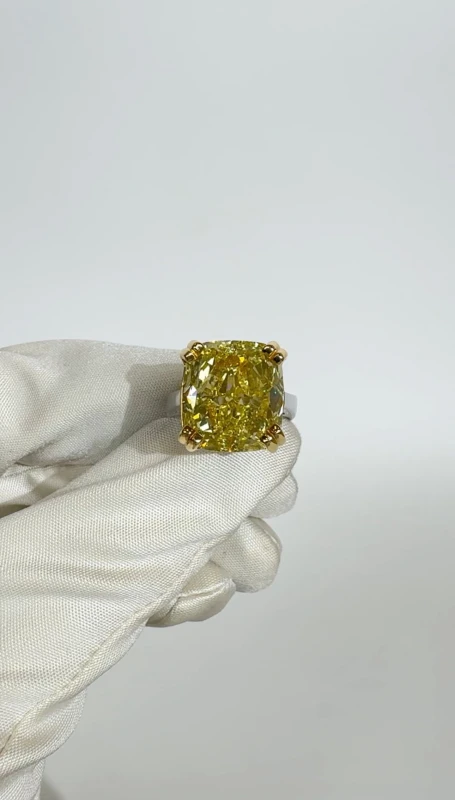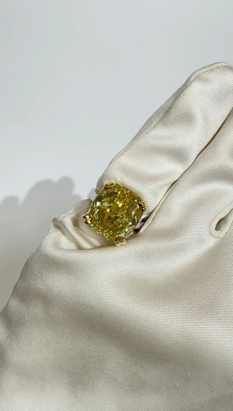 CUSHION DIAMOND 14.04 CT FANCY YELLOW/VVS2 RING (SIZE 51)