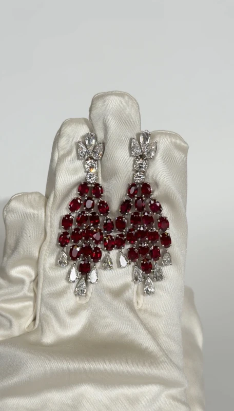 DIAMOND 7.56 CT & RUBY 21.88 CT EARRINGS