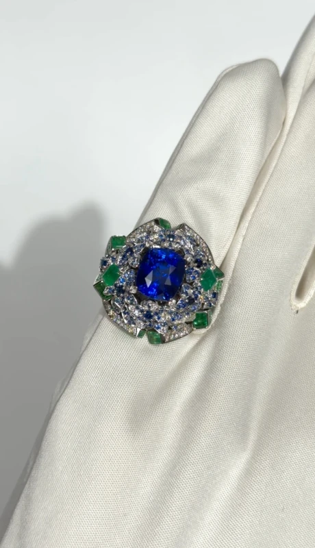 CUSHION SAPPHIRE 5.10 CT PEACOCK BLUE RING (SIZE 54)