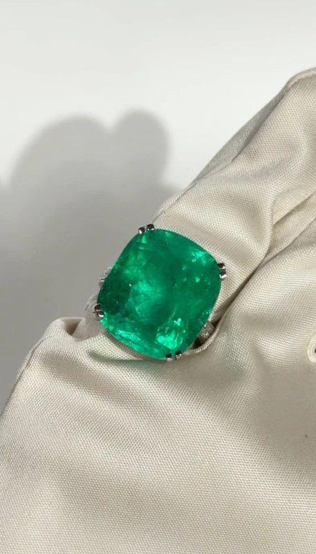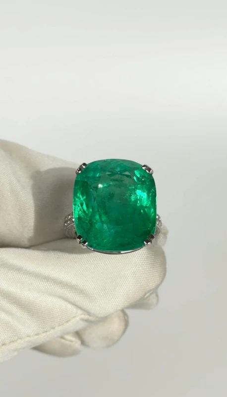 COLOMBIA EMERALD GREEN 29.59 CT RING (GRS)