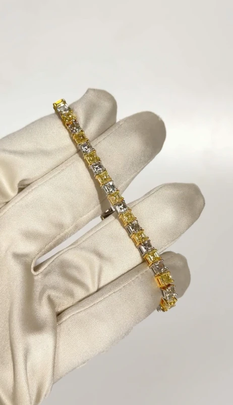Square Emerald Cut Yellow and White Diamond Bracelet