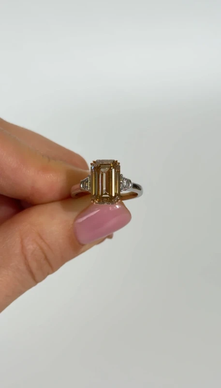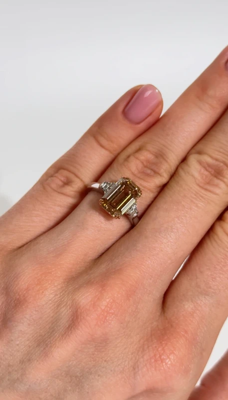 EMERALD DIAMOND 5.02 CT FANCY YELLOWISH BROWN/SI RING