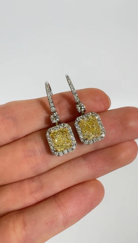 Серьги Earrings without a brand RADIANT DIAMOND 3.01 - 3.01 CT FANCY LIGHT YELLOW/VVS1-VVS2 EARRINGS (GIA) NN3.01-3.01FLY (id 41263)
