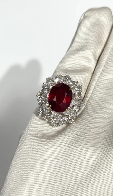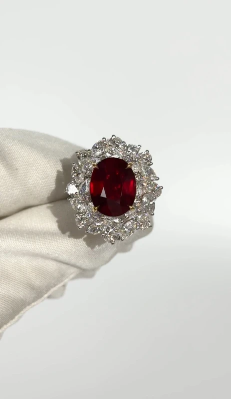 OVAL RUBY 8.04 CT PIGEON BLOOD RING (No hited)