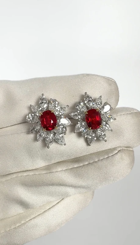 OVAL RUBY 1.27-1.61 CT VIVID RED EARRING (GRS)