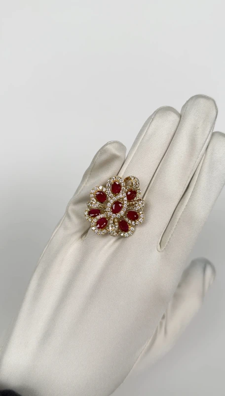 КОЛЬЦО С РУБИНАМИ И БРИЛЛИАНТАМИ